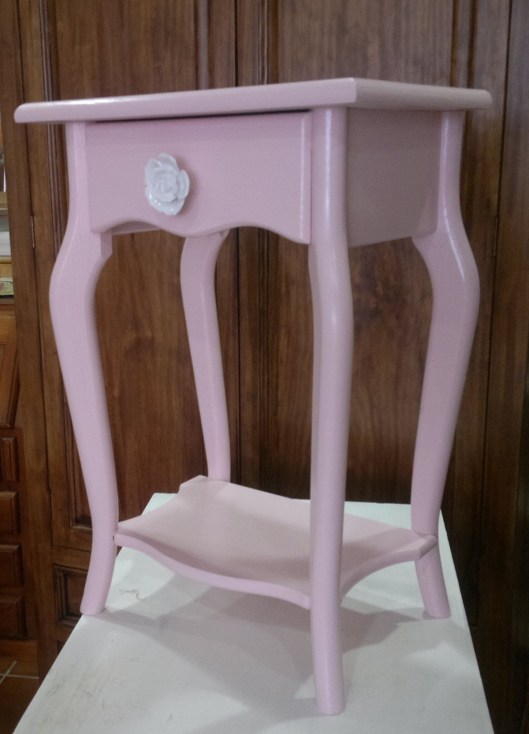 Queremos pintar en color rosa bebé esta bonita mesilla de madera.