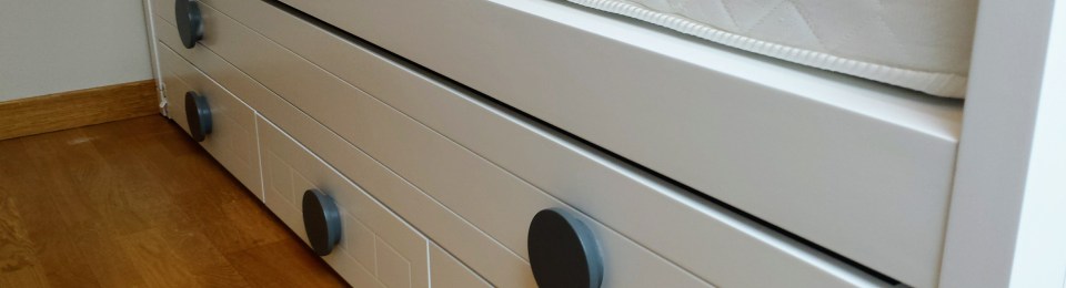 cama triple, camas nido, cómoda, dormitorio, habitación infantil, lacado, tirador infantil
